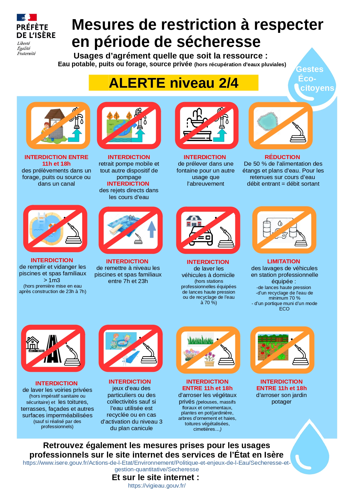 pour les zones d’alerte du territoire isérois hors Est-Lyonnais, Bièvre-Liers-Valloire et Galaure-Drôme des Collines - NIVEAU 2/4